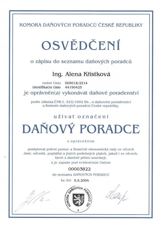 - v roce 2006 založila společnost DaK ALKRA s.r.o, která je zapsaná v Komoře daňový poradců ČR