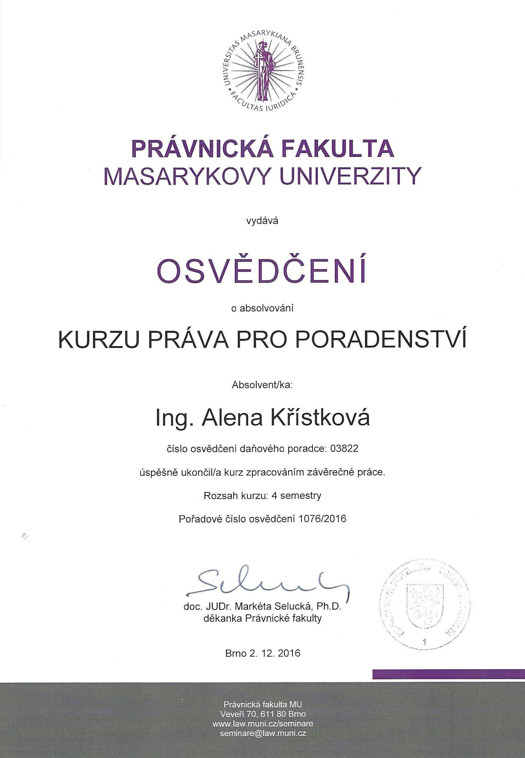 Kurz práva pro poradenství, Právnická fakulta MU v Brně